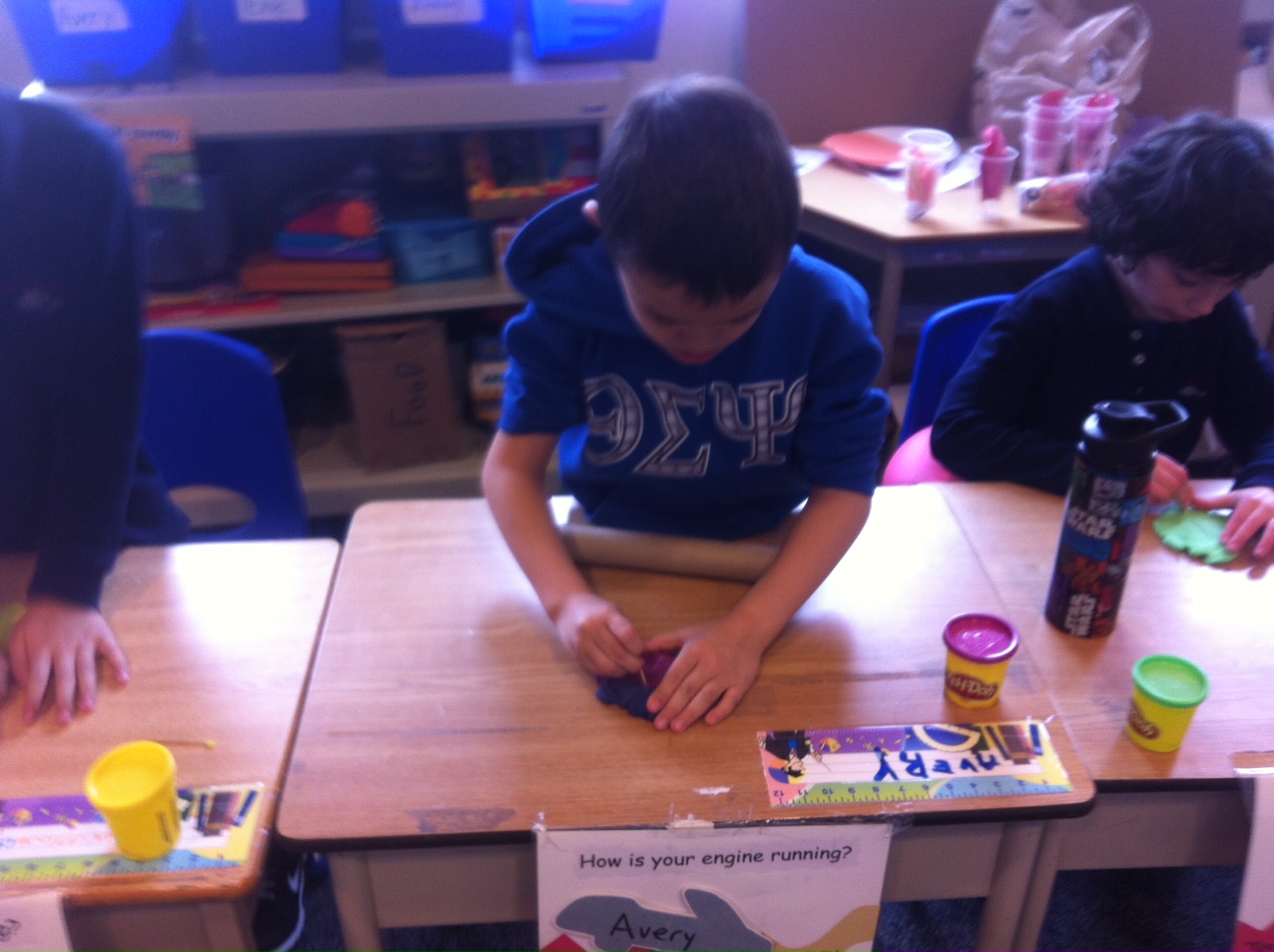 In Minute to Win It today the boys had to knead, pull, stretch, and roll play-doh into a pizza, and then use a toothpick to cut in into certain fractions. For example, they had to make a pizza with four slices (1/8 ths) and eight slices (1/12 ths). It was a lot of fun and utilized their fine motor skills, math skills (fractions and numeracy), and sportsmanship.