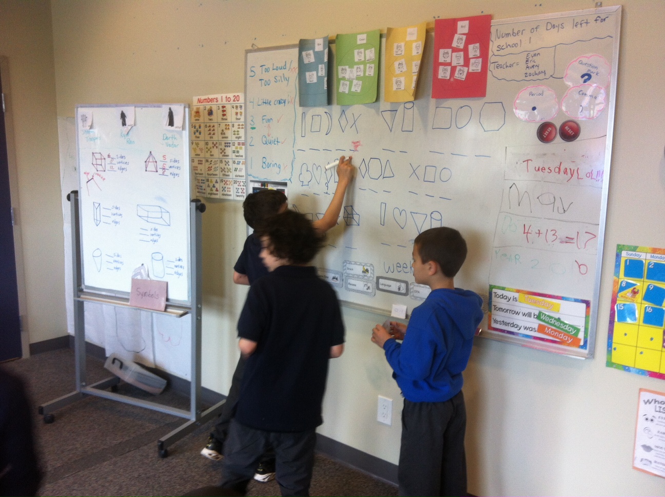In Math and Language Arts today, the boys had to yet again decipher a hidden message using various words and shapes. The boys had to first find hidden clues around the classroom to solve the secret message on the white board. Next, we finished our book and tried to help Matt and Bibi find their way out of the pyramid. They did so well using their oral and written language skills, spelling skills, and math skills.