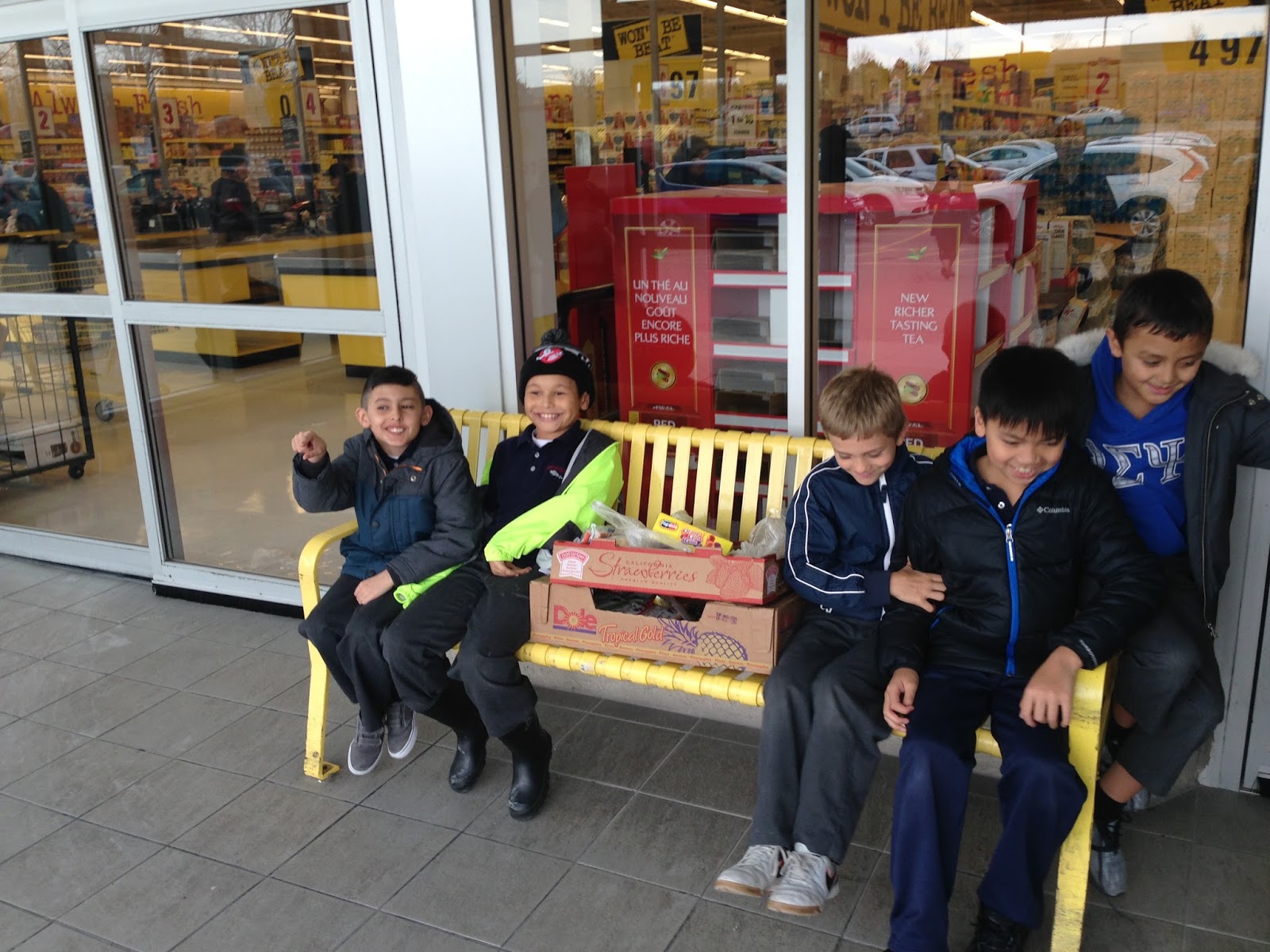After No Frill's we went to the Post Office to learn how to send a letter to the United States of America. We wrote a letter to Evan using our language, spelling, grammar, and phonics skills. At the Post Office we also used our math skills, money skills, writing skills, life skills and social skills with the friendly clerk to mail the letter!